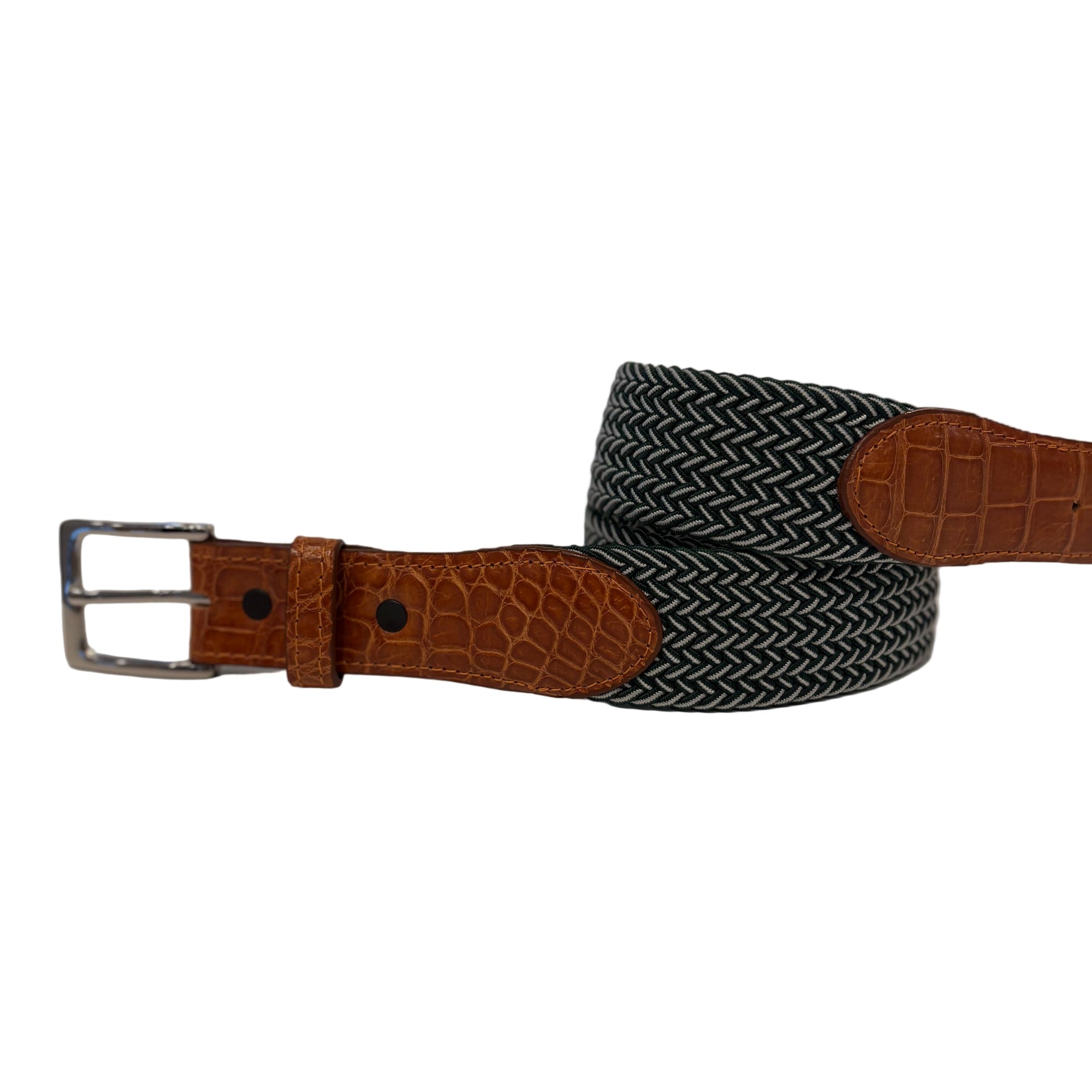 Woven belt with 5 hole tab, handmade in Georgia from the finest skins. Perfect for the golf course, business meeting, or date night.