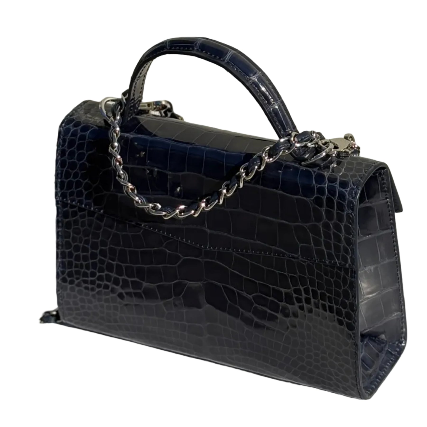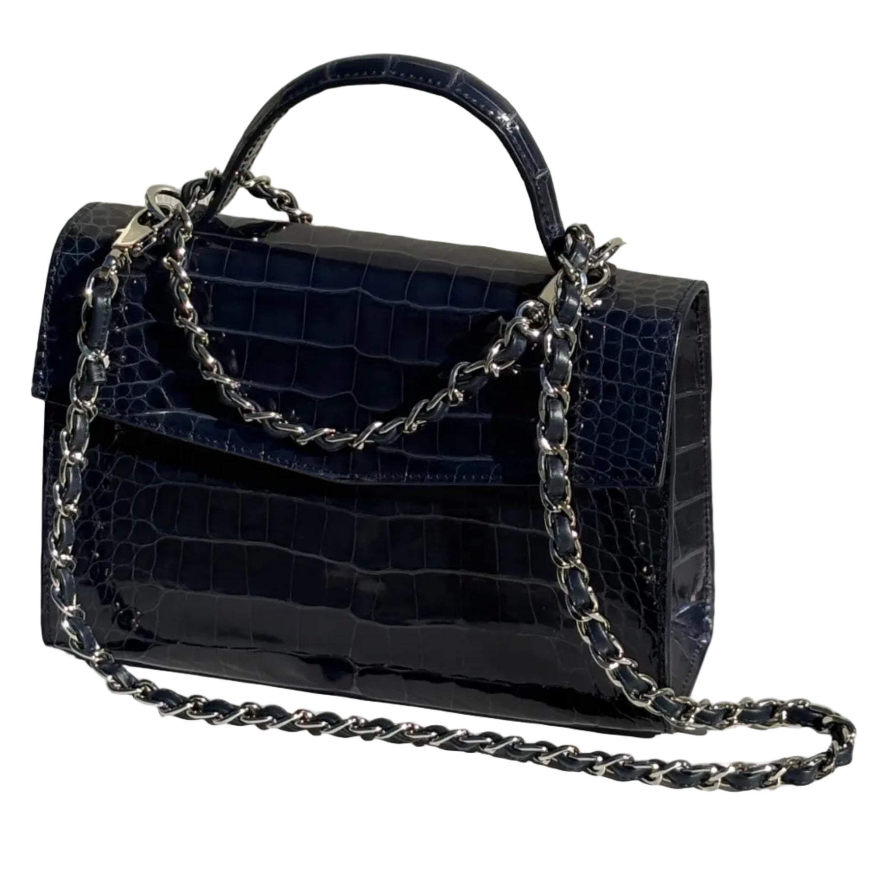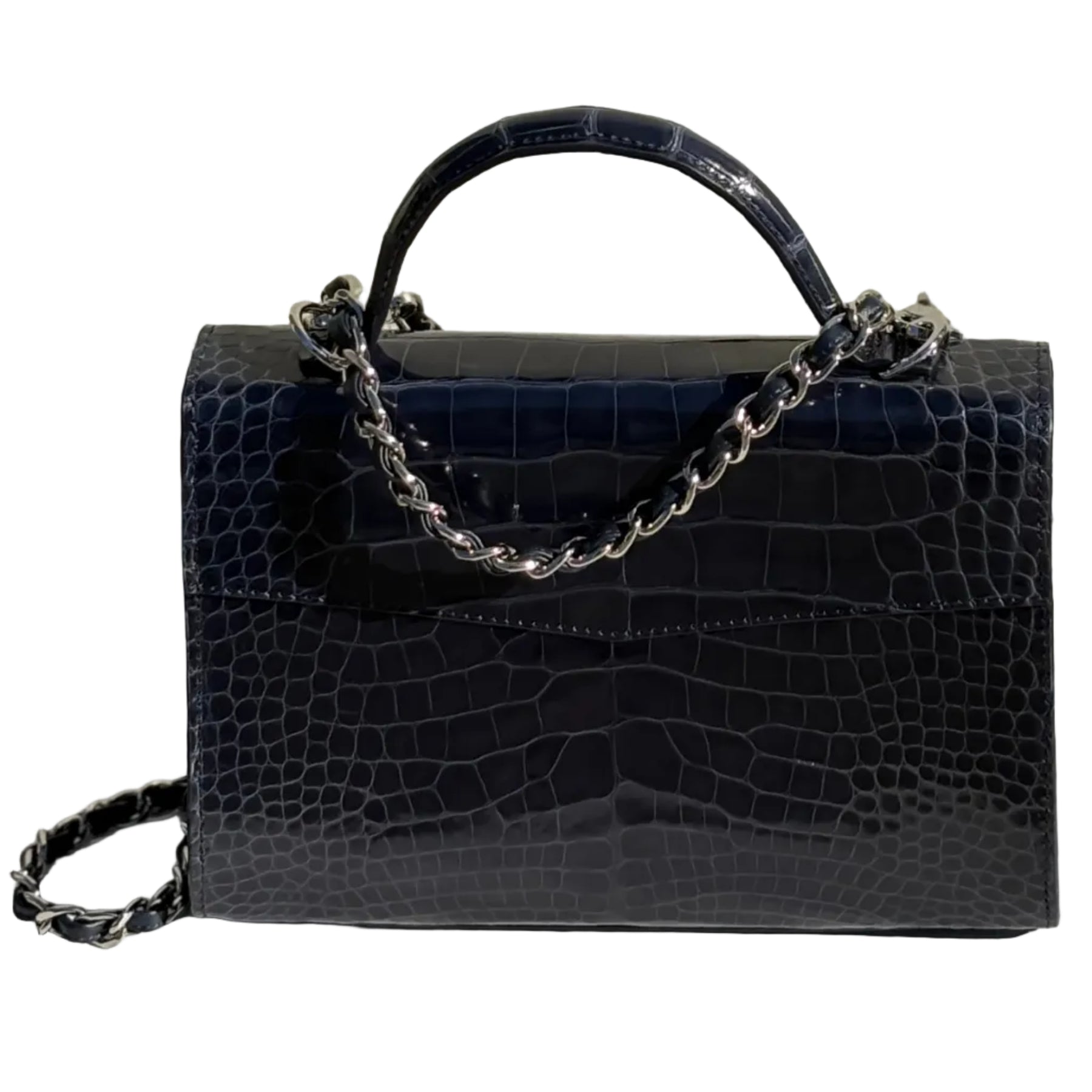 GENUINE ALLIGATOR, MIDNIGHT GLAZED, SILVER HARDWARE